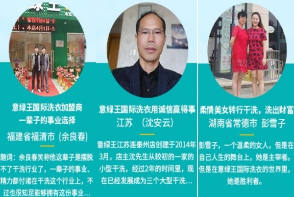 意绿王"秉承"绿色环保干洗"理念的企业,意绿王公司目前已真正 发展成为国内洗衣业中的一家从生产洗涤设备、原材料到洗衣技术培着开发和研究, 已被众多的消费者知晓和认可。